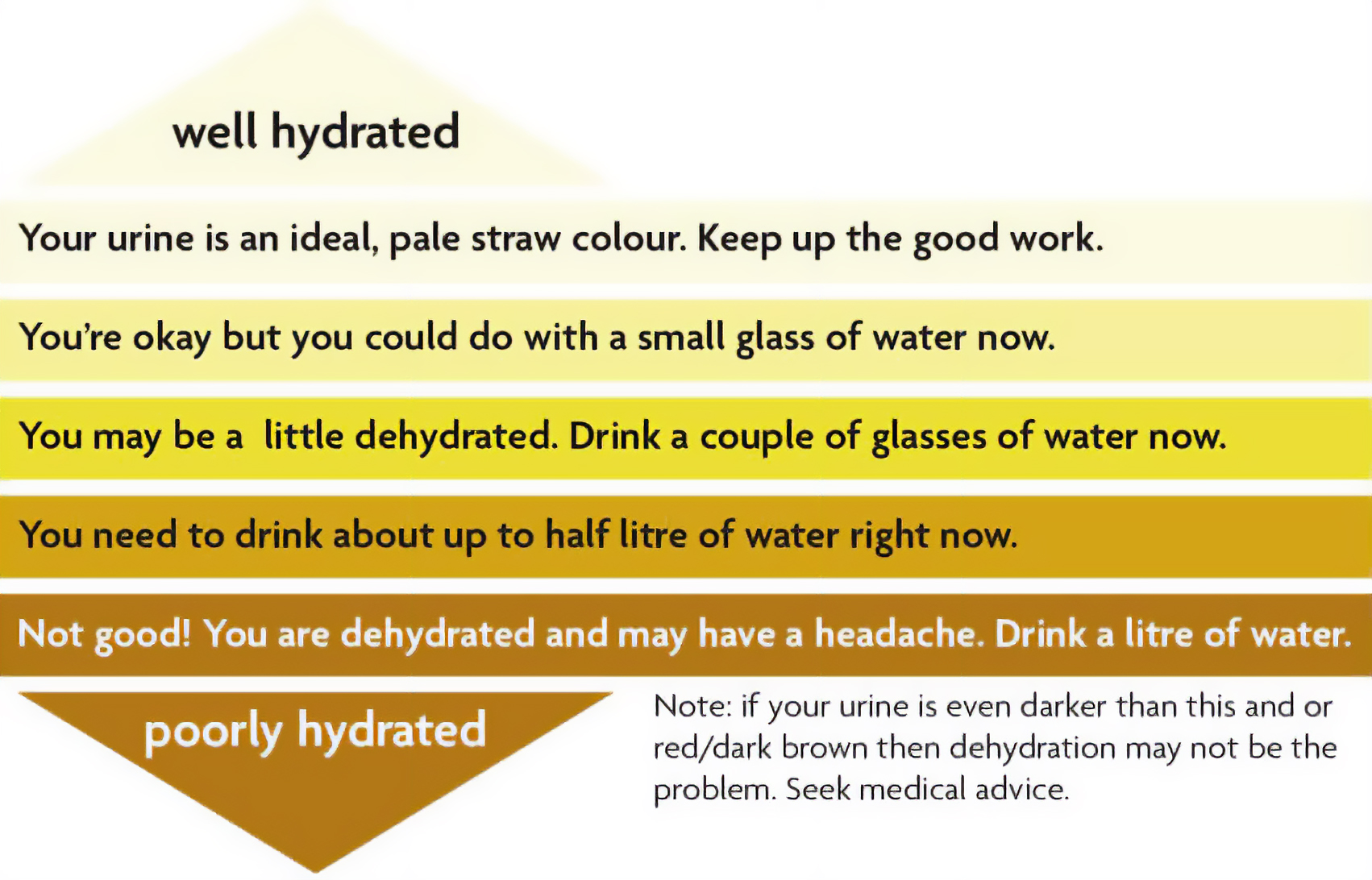 There’s one easy way to know if you are properly hydrated – check the colour of your urine against our ‘pee chart’.